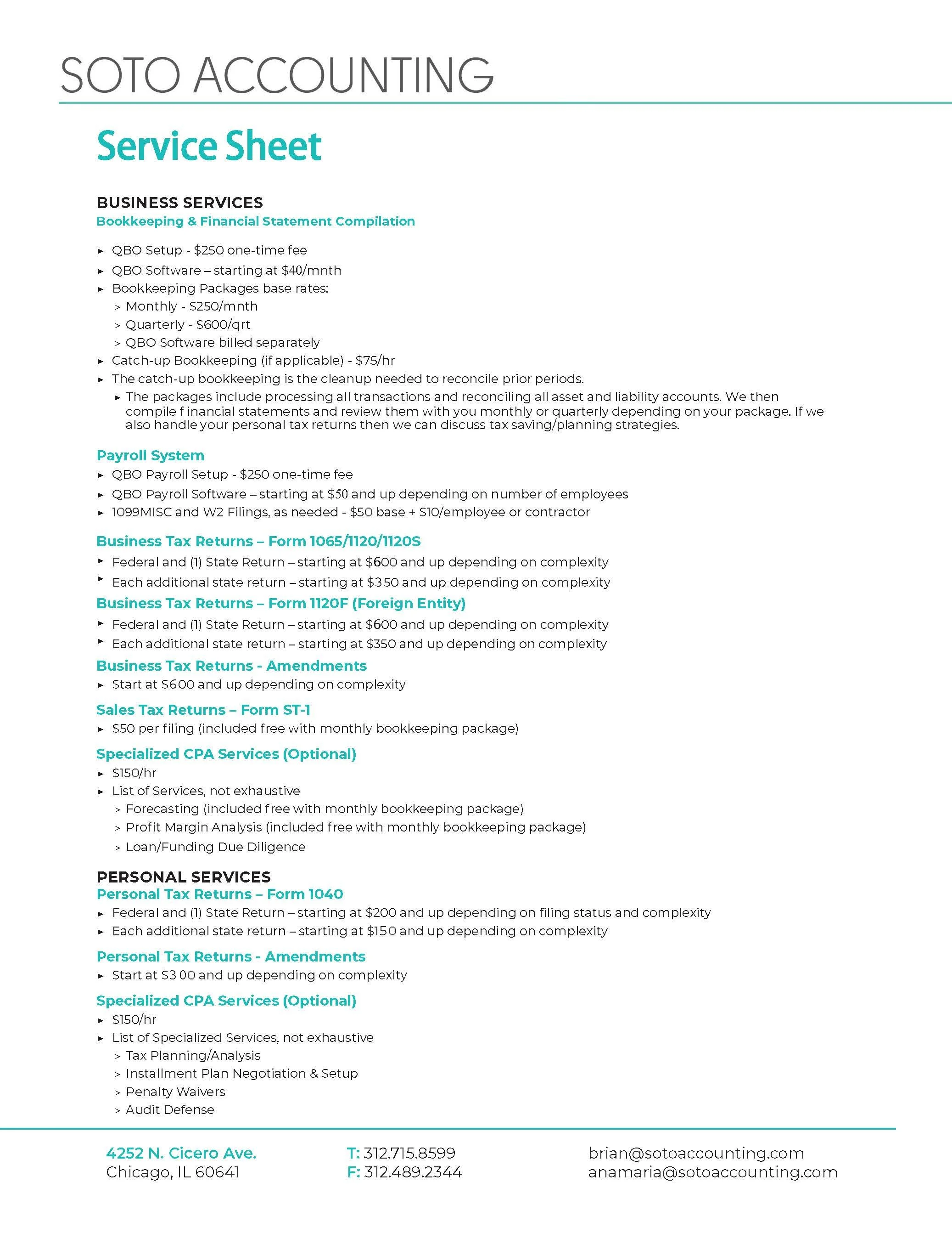 Sole Proprietorship | Form 1040 with Sch C, Sch SE, QBI | $400 – $600 |